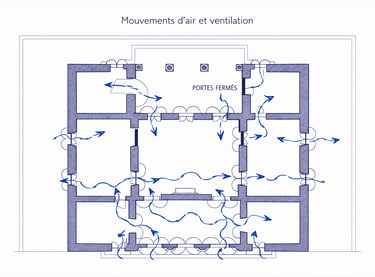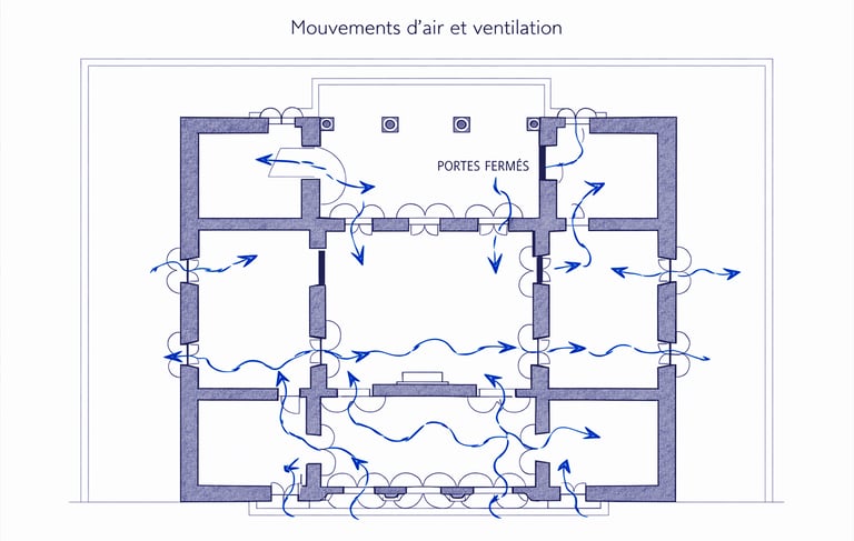 L’objectif est d’identifier les principes passifs à l’œuvre à l’origine — inertie des matériaux, ventilation naturelle, protections solaires, organisation des ouvertures — et d’analyser leur efficacité dans l’usage muséal actuel, marqué par la présence de collections sensibles.