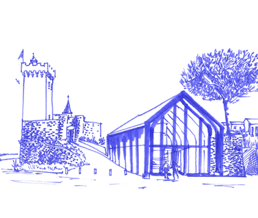 L’extension contemporaine, implantée face au mur patrimonial du XIIIe siècle, établit un dialogue mesuré avec l’existant. Par son écriture architecturale, elle affirme sa contemporanéité tout en respectant l’épaisseur historique du site.