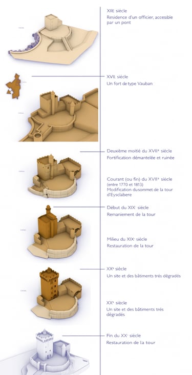 L’intervention ne cherche pas à figer un état, mais à révéler la continuité historique de l’édifice. Le phare devient le fil conducteur du parcours muséographique, proposant une ascension à la fois physique et symbolique.