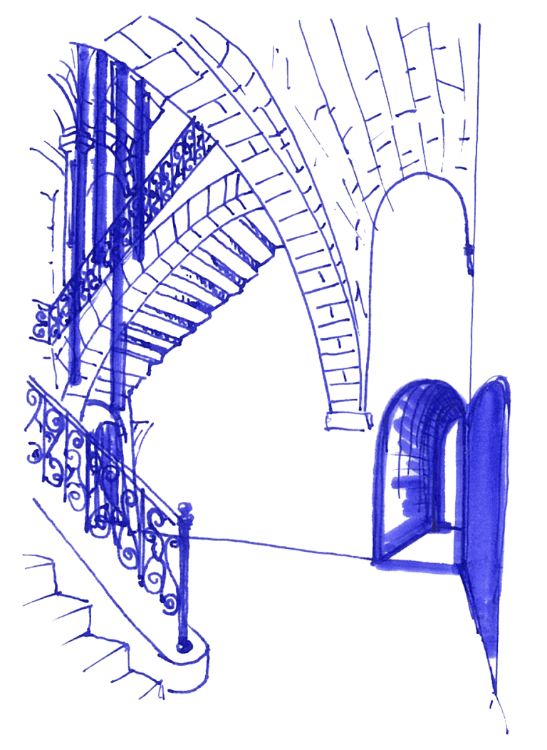 L’escalier monumental, autrefois relégué à un rôle secondaire, retrouve sa place centrale dans le parcours. Il redevient l’élément structurant et symbolique du projet, articulant les niveaux et révélant la verticalité du lieu.