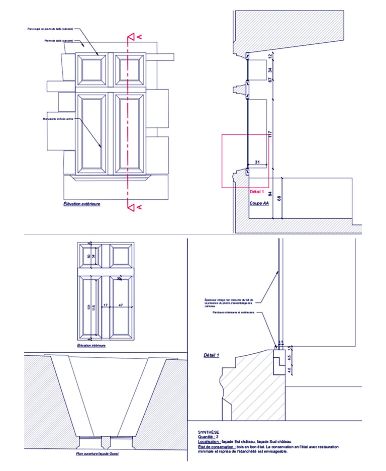 Pour ce projet, j'ai réalisé sur le diagnostic, le relevé des détails de l’existant (MEX, modénatures, éléments de fer forgés) et la phase étude
